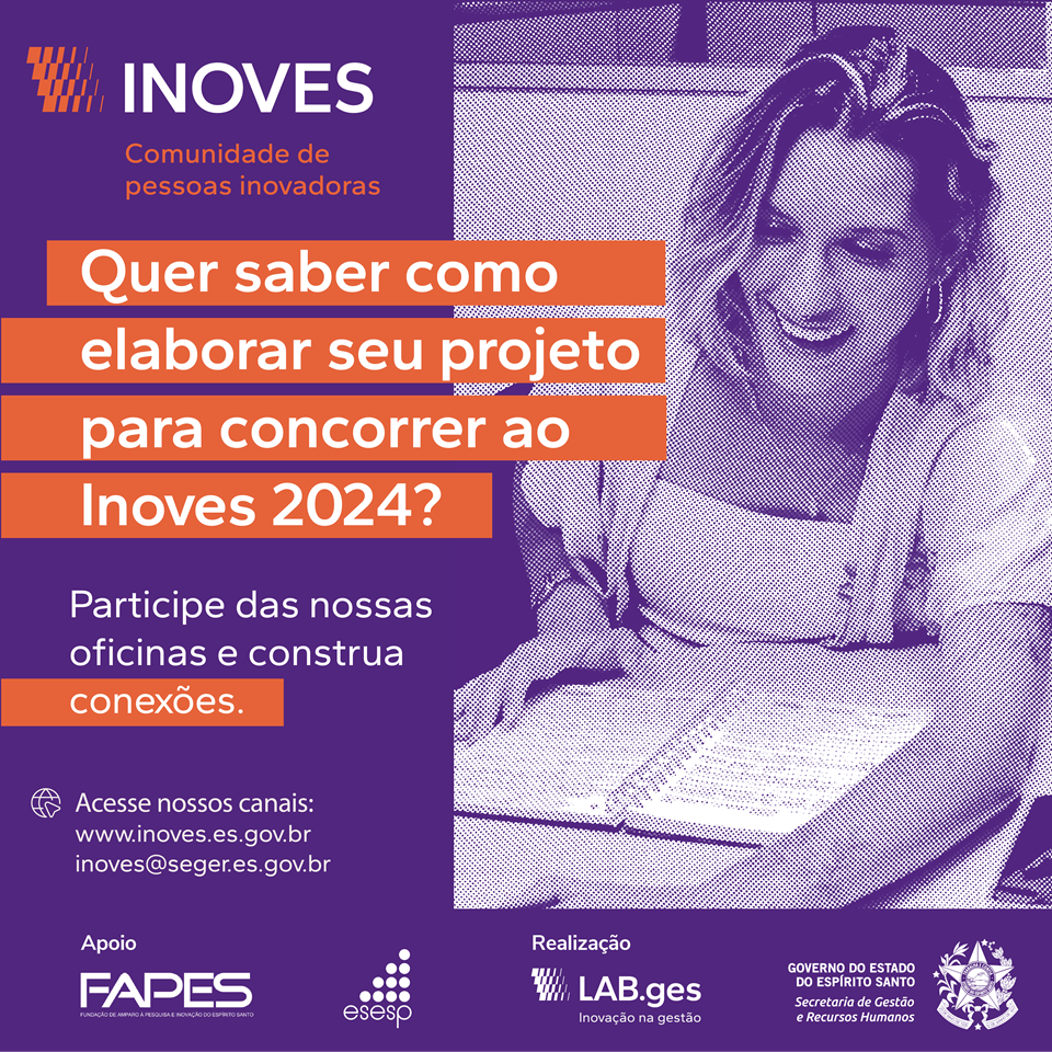 O Laboratório de Inovação na Gestão (LAB.ges), da Secretaria de Gestão e Recursos Humanos (Seger), realizará uma série de oficinas sobre a elaboração do plano de projeto para o Prêmio Inoves 2024. O objetivo é orientar as equipes de servidores públicos que desejam inscrever iniciativas no programa.