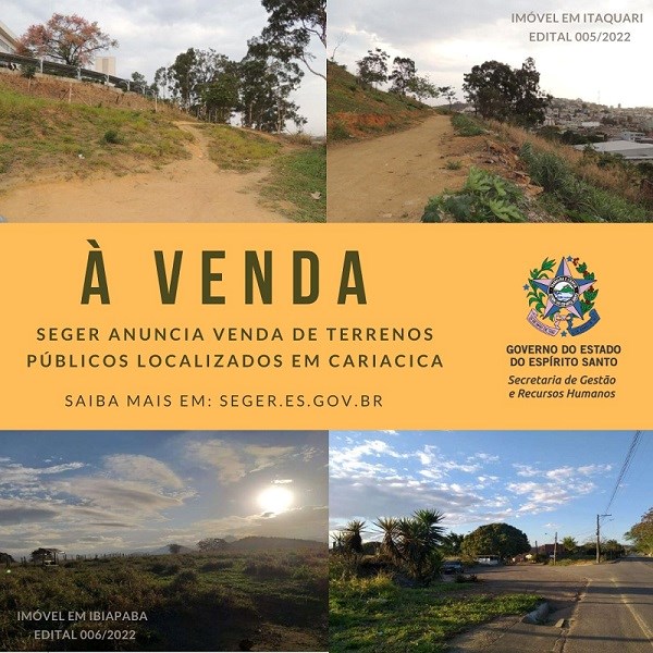 Ao todo, estão sendo ofertados dois imóveis por meio de editais distintos, ambos localizados no município de Cariacica. O de Nº 006/2022 disponibiliza um terreno rural de 60 mil metros quadrados, situado na Rodovia Cariacica/Santa Leopoldina, em local denominado Ibiapaba. O lance inicial é de R$ 5.312.000,00.