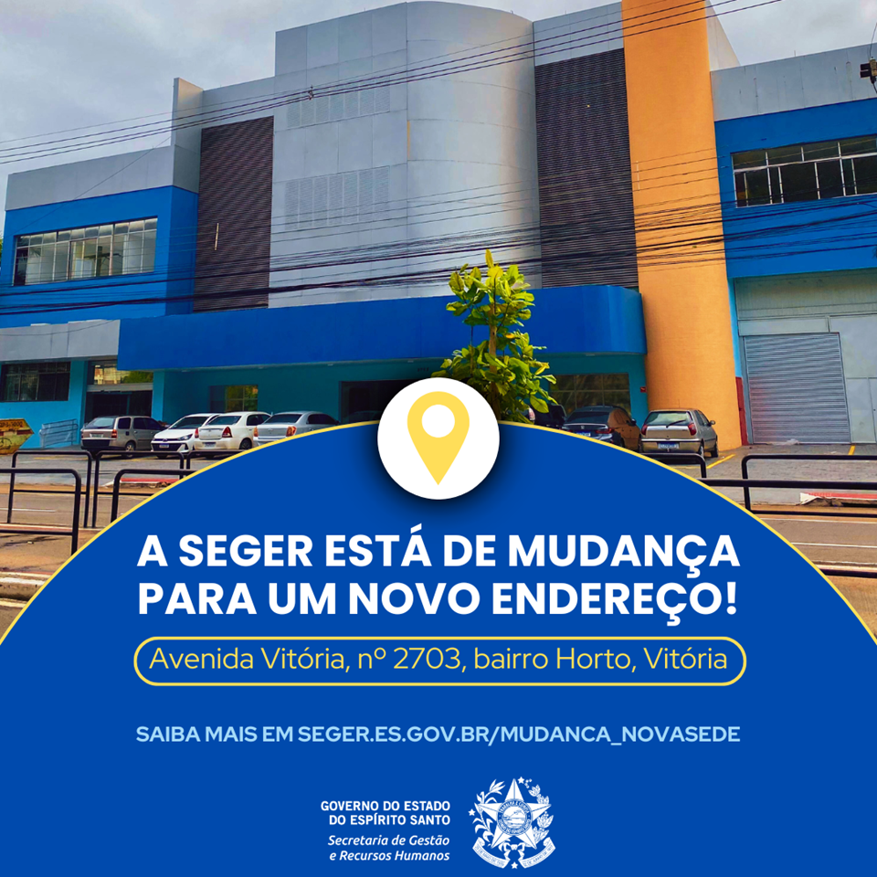 A mudança da Secretaria de Gestão e Recursos Humanos (Seger) para o novo endereço, na Avenida Vitória, será concluída no dia 30 de junho de 2025.
